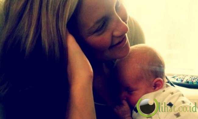 dalam foto yang diambil saat putranya berusia dua bulan. Dalam foto tersebut Kate terlihat sangat berbahagia mendekap putranya.